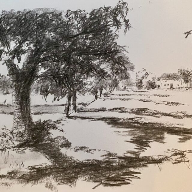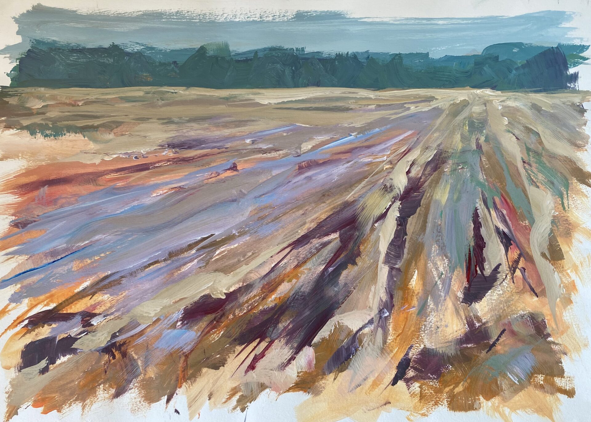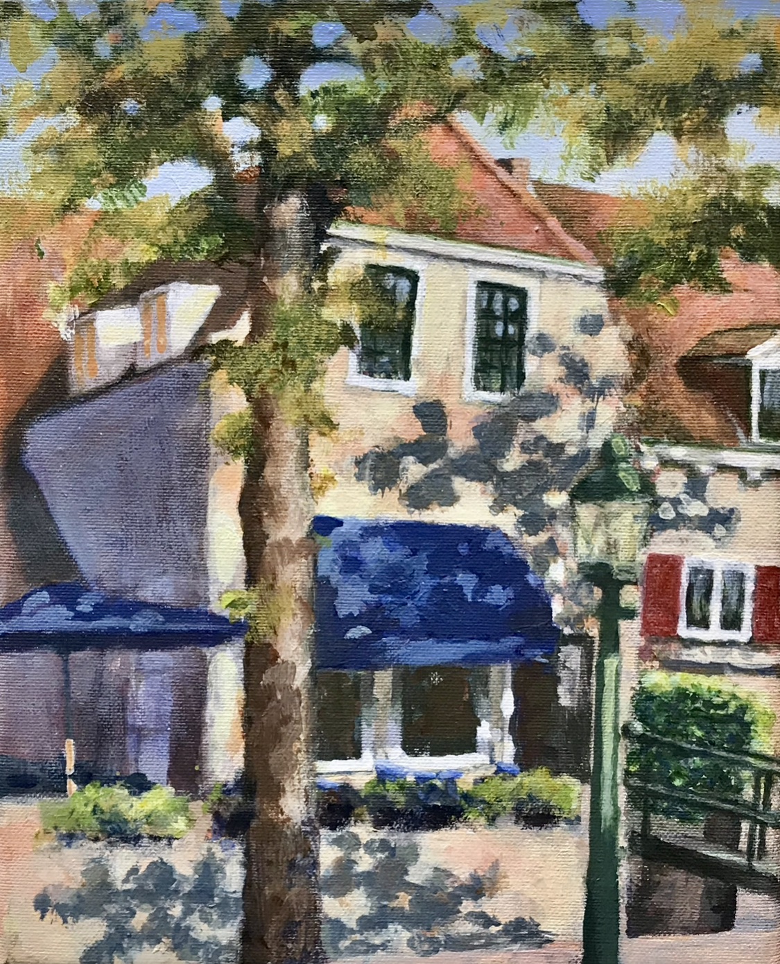 Het landschap is – naast portret en model – mijn belangrijkste onderwerp. Ik teken vaak buiten, met houtskool, pen en inkt of pastelpotloden. De schets werk ik thuis uit in olieverf, een enkele keer in aquarel. Een goede compositie staat voorop. Daarnaast wil ik de sfeer neerzetten die ik ervaar, de ruimte van het landschap, de verte en het spel van licht en schaduw met warme en koele kleuren. Een gebouw of contouren van een stad geven de weidsheid van het landschap weer, spiegelend water brengt ruimte, licht en stilte.