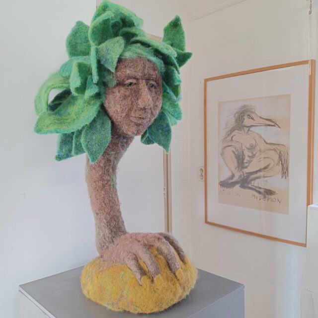 Na jaren werken in brons, en later in hardgips, gebruik ik nu wol om uitdrukking te geven aan wat er in mij omgaat. Nog steeds driedimensionaal, boetserend met viltnaald en vezels. Mensen, dieren en combinaties daarvan zijn al lang onderwerp en daarbij betrek ik nu ook de plantenwereld in combinaties die de onderlinge verwantschap herkenbaar maken. Zowel techniek als materiaal zijn milieuvriendelijk van aard. Hiermee werken is zacht voor de handen en goed voor de ziel. Tijd is mijn vriend.