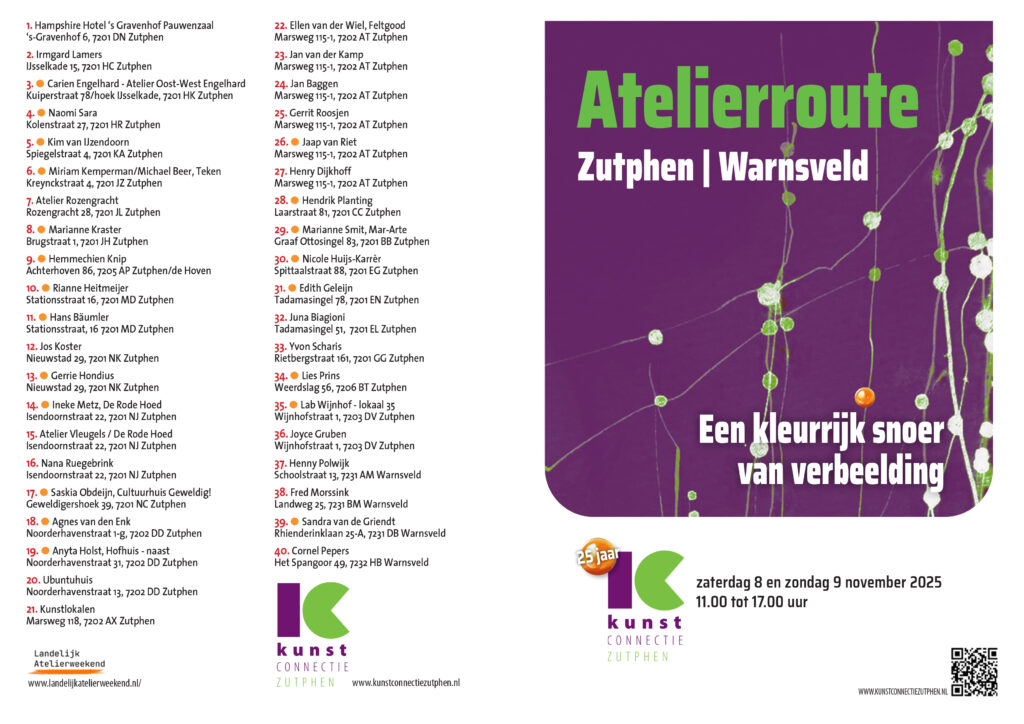 Op 8 en 9 november 2025 van 11-17 uur is er een atelierroute in Zutphen en Warnsveld.